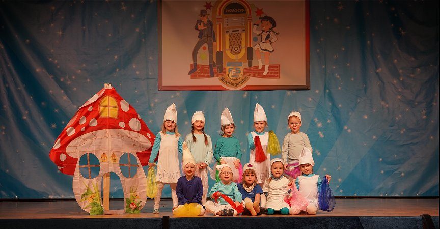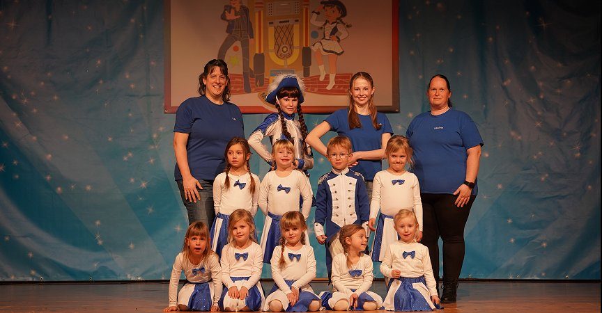 Bei unseren Kleinsten, den Minis, steht erst einmal die allgemeine Motorik auf dem Programm. Bevor es zum Erlernen der ersten Gardeschritte geht, üben wir den Hampelmann, Purzelbäume und Hüpfen. Auch das Dehnen kommt nicht zu kurz. Alles wird auf eine spielerische Art den Kindern beigebracht. Dieses Jahr sind wir eine kleinere Rasselbande, da einige von uns zu den Purzeln gehen durften.